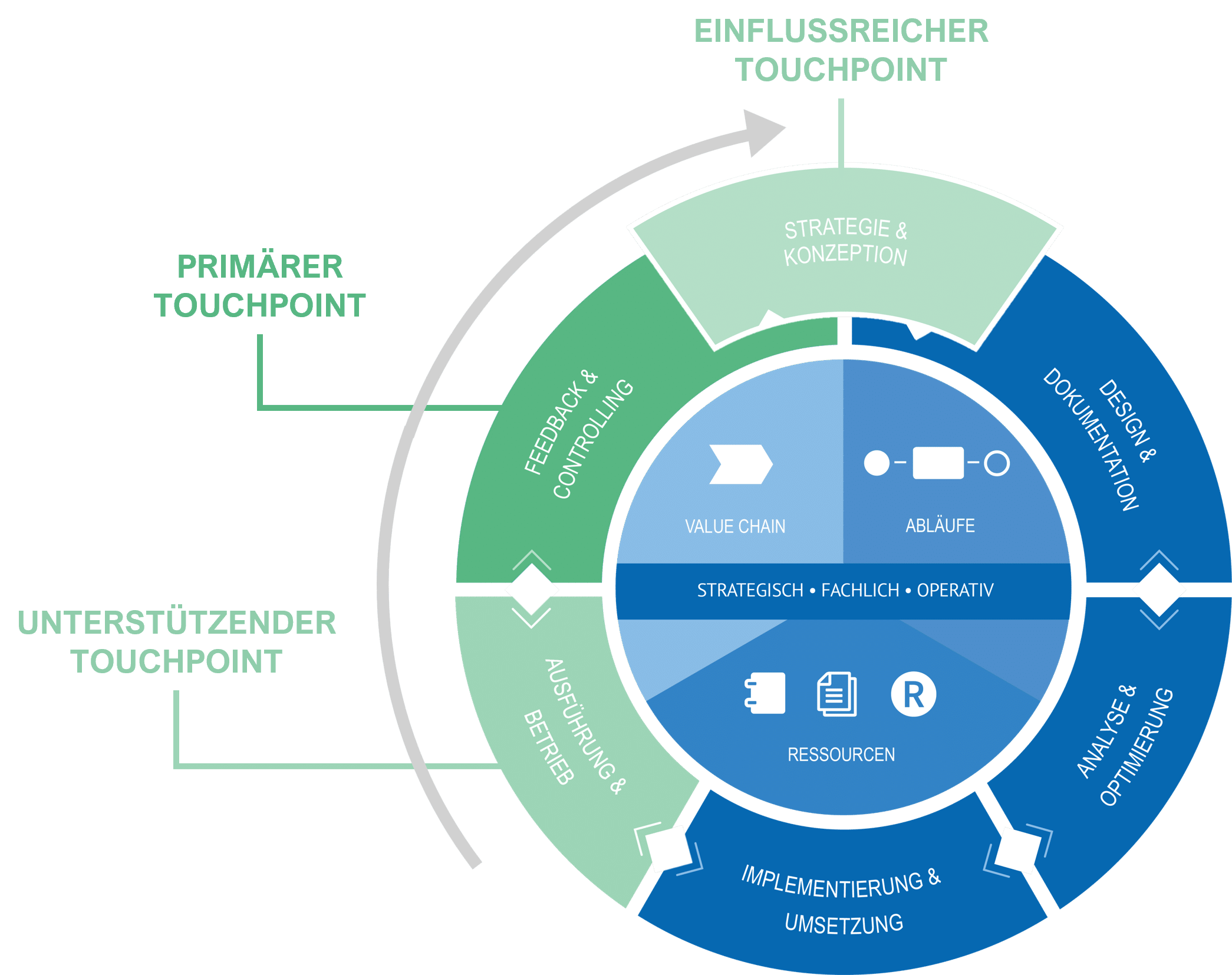 - Rückführung der Erkenntnisse in Strategie oder Prozessneugestaltung