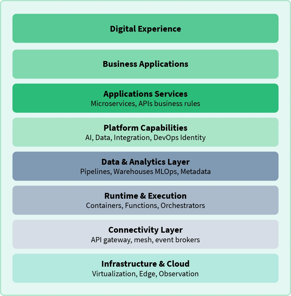 Tipp: Wenn Sie ein sofort einsetzbares Beispiel suchen, laden Sie unser Technologie-Referenzmodell für das KI-Zeitalter herunter. Es zeigt, wie sich ein klassisches TRM für Cloud-, KI- und Automationsportfolios weiterentwickeln lässt.