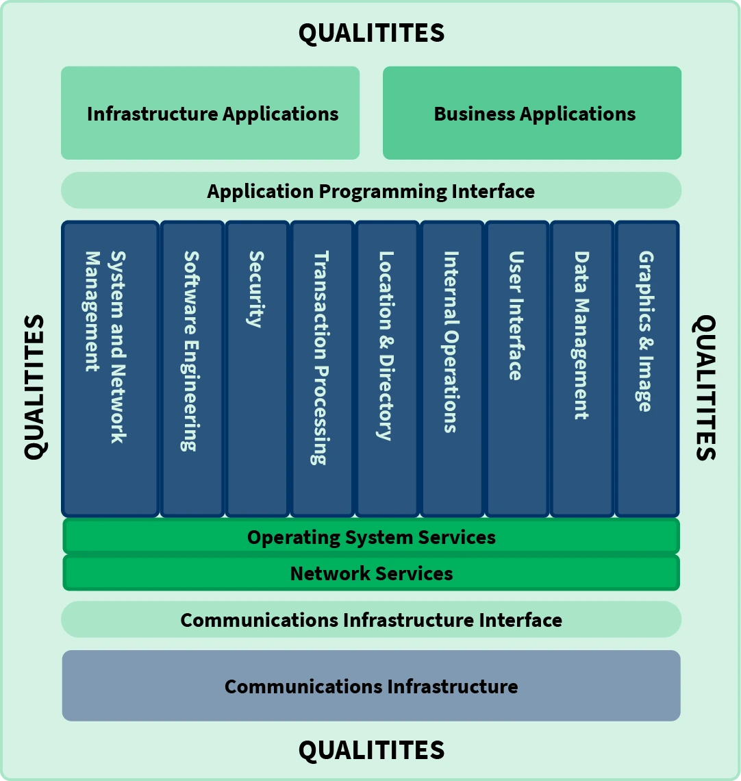 Das TOGAF Technologie-Referenzmodell (TRM) war über viele Jahre hinweg der Standard zur Strukturierung von Unternehmenstechnologie. Es trennt Geschäftsapplikationen von Plattformservices, Runtimes und Infrastrukturkomponenten – ideal für die ehemals dominierende Welt monolithischer Systeme und statischer Rechenzentren.