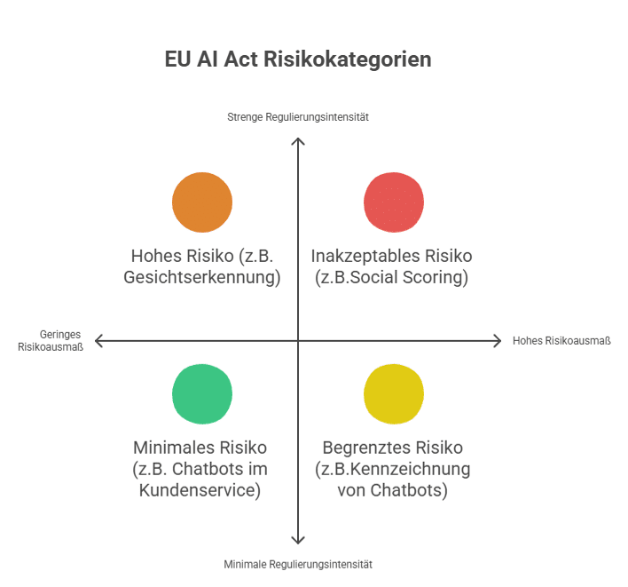 - Inakzeptables Risiko: verboten (z. B. Social Scoring).
