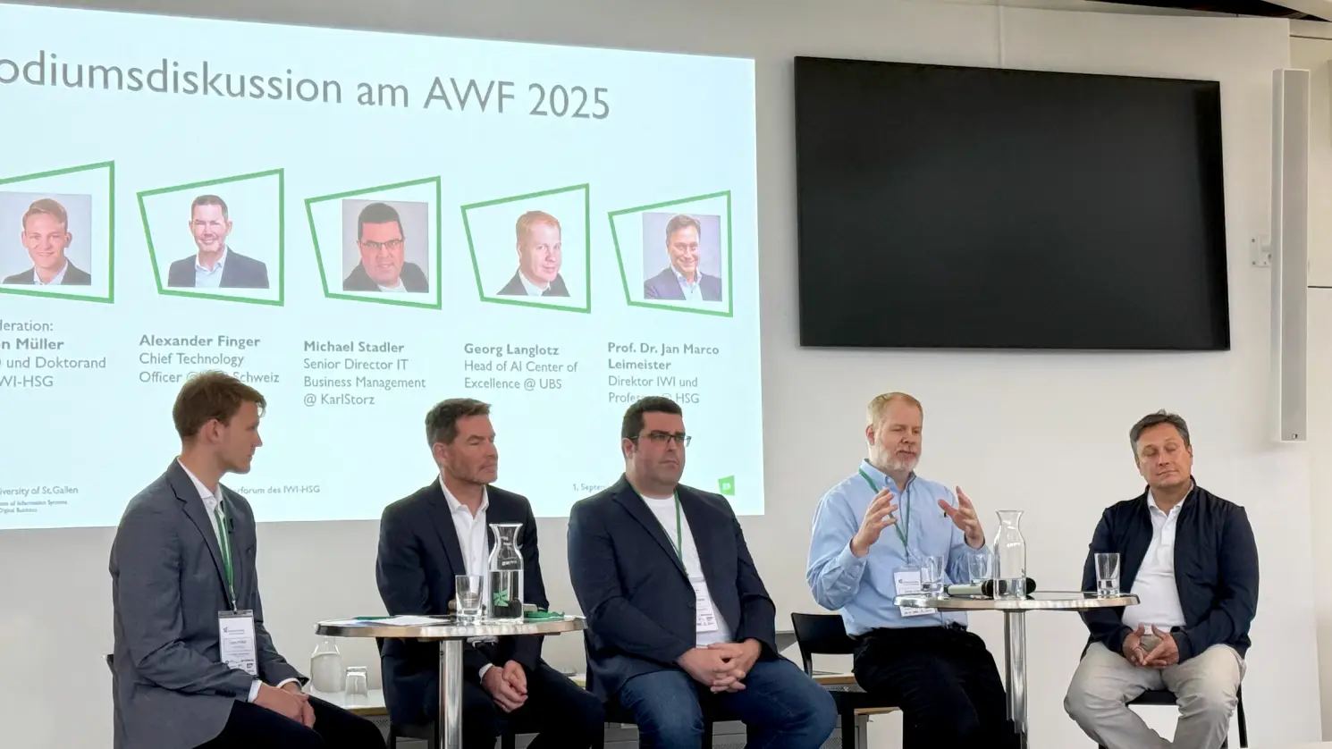 In der abschließenden Diskussion wurde der rote Faden der Veranstaltung noch einmal deutlich: Agentic AI ist kein IT-Thema, sondern ein kulturelles. Leon Müller von der HSG moderierte ein Gespräch, das die wahren Herausforderungen beleuchtete. Georg Langlotz forderte: „Führungskräfte müssen künftig auch Agenten führen können.“ Alexander Finger von SAP Schweiz stellte klar: „Die größten Veränderungen sehen wir nicht in der IT, sondern in den Bereichen HR, Legal und Finance.“ Michael Stadler von Karl Storz betonte: „Wer mit Agenten arbeitet, muss klar sagen können, was er will.“ Und nochmals Finger: „Ohne Rückhalt vom Management und die Bereitschaft, Fehler zuzulassen, bleibt KI ein Trend – kein Werkzeug.“