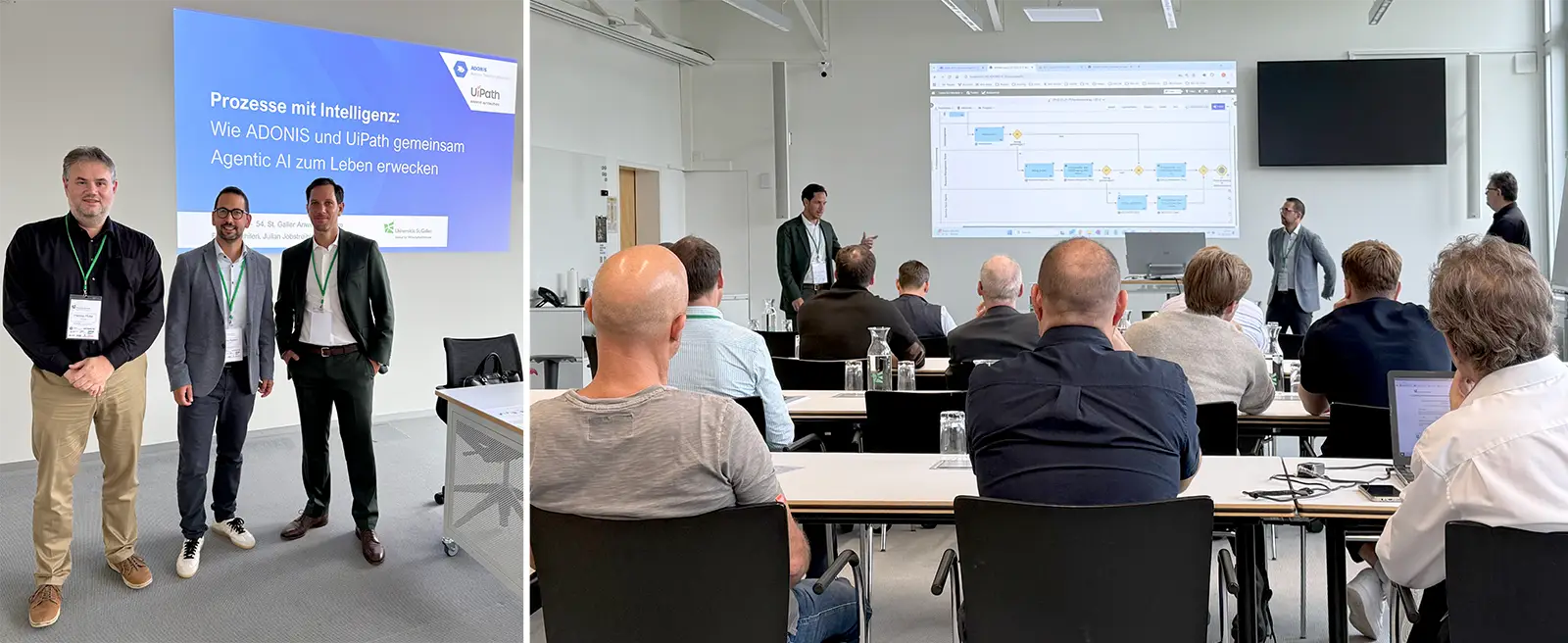 Im gemeinsamen Workshop von UiPath und der BOC Group wurde „Agentic AI” greifbar. Im Zentrum stand die BPM-Suite ADONIS als strategische Ausgangsbasis und UiPath als Plattform, die Bots, Menschen und Agenten orchestriert. „Automatisierung allein reicht nicht“, betonte Julian Jobstreibizer. „Es braucht Orchestrierung – und die beginnt bei einer sauberen Prozessdokumentation.“ Genau hier entfaltet ADONIS seine Stärke, indem es Prozesse analysiert und Potenziale für Agentic AI erkennt. Matthias Müller von UiPath ergänzte: „Wer seine Prozesslandschaft kennt, kann den Einsatz von Bots, RPA und KI systematisch planen – mit echtem Mehrwert für Mitarbeitende und Kunden.“ Der Workshop zeigte, dass Prozesswissen nicht nur die Grundlage, sondern auch die Voraussetzung für echten KI-Nutzen ist.