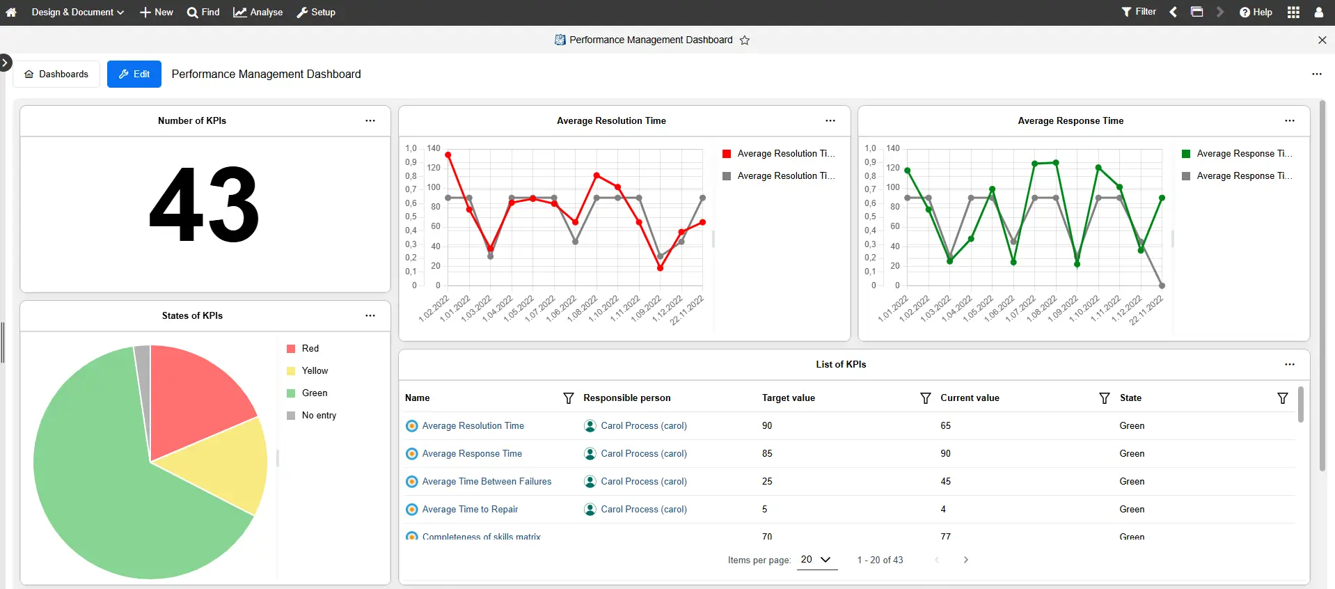 The previously mentioned configurable Dashboards in ADONIS can help operationalize ownership by providing the right level of visibility for different stakeholders and enabling monitoring of KPIs.