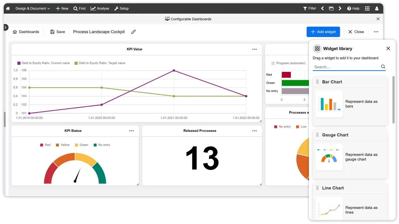 Hint: If you would like to create and configure your own dashboard, this is possible with the Dashboards App in ADONIS.