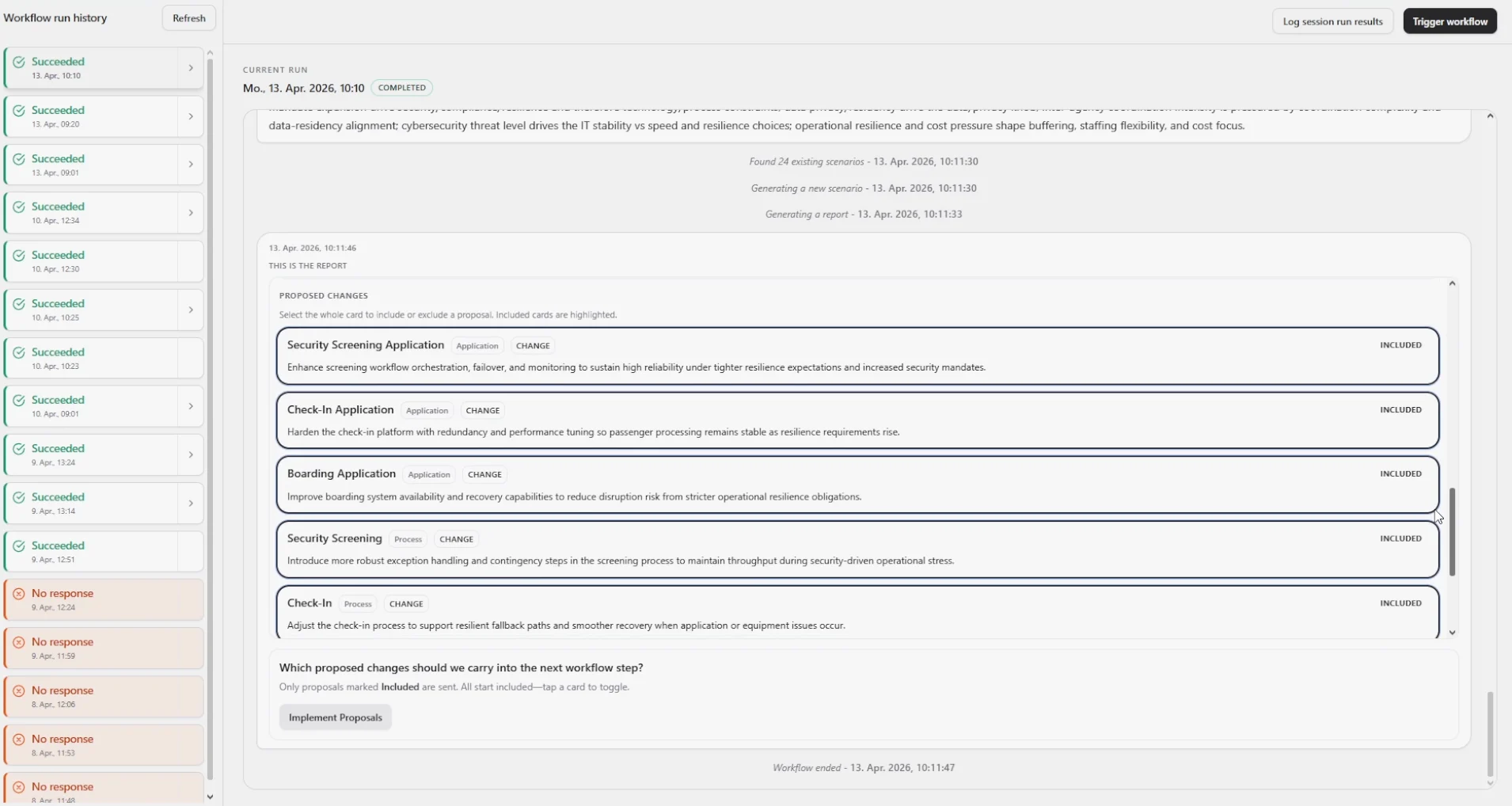 Scenarios, requirements, and proposed changes are not just described – they are reflected in a living model of the organization. From there, you can start exploring how those changes would actually play out.