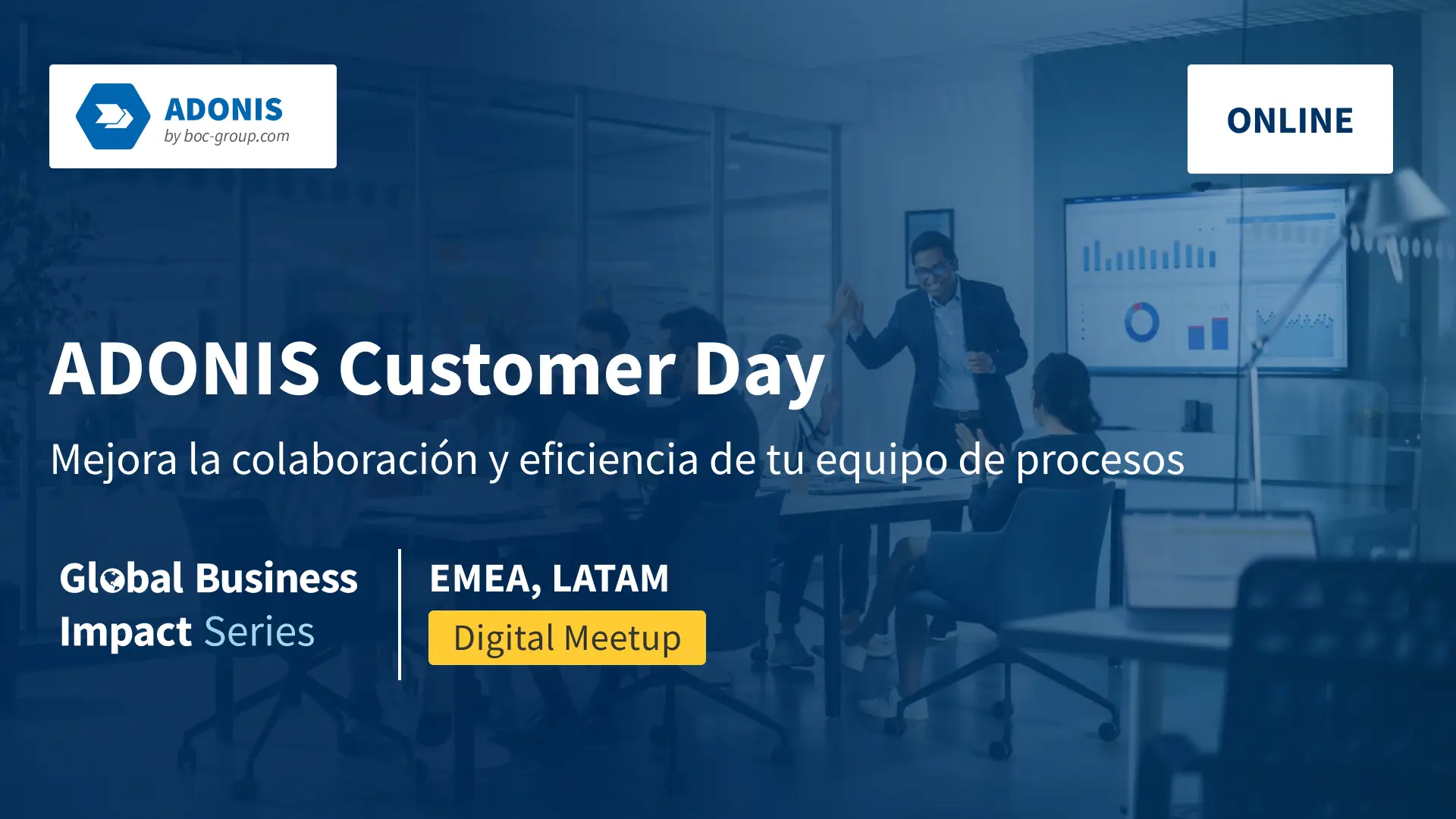 Únete a este evento digital exclusivo para clientes de ADONIS, donde exploraremos estrategias para promover la cultura BPM, maximizar los beneficios de la plataforma y descubrir las últimas novedades de ADONIS. Una oportunidad única para inspirarte, aprender y conectar con otros usuarios.