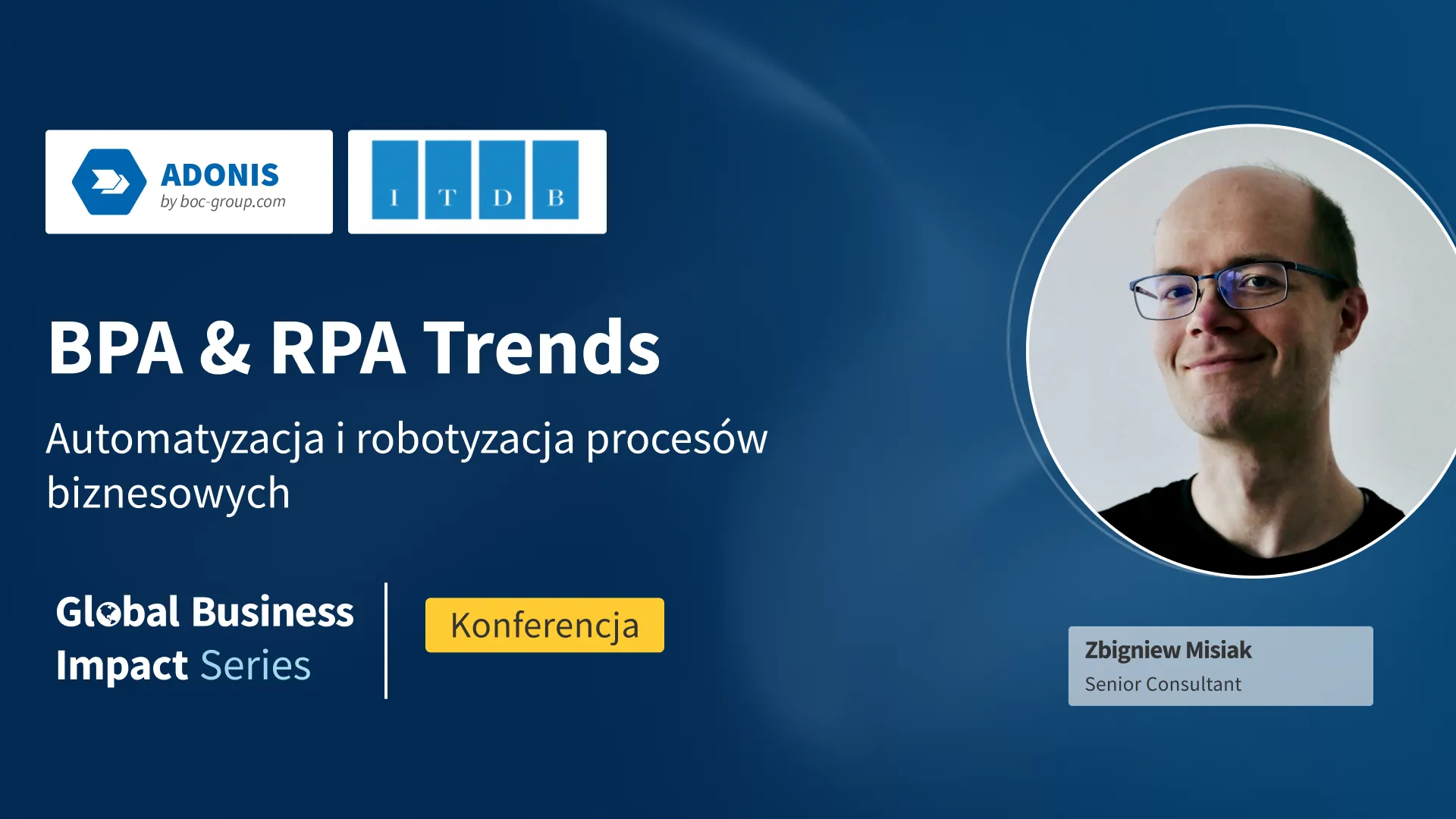 Podczas wydarzenia wystąpi Zbigniew Misiak, Senior Consultant w BOC Group, który podzieli się ekspercką perspektywą na rozwój środowisk BPM oraz wyzwania i możliwości związane z optymalizacją, automatyzacją i robotyzacją procesów w organizacjach.