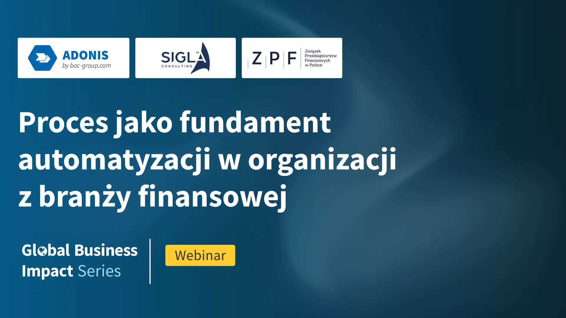 Podczas webinaru, organizowanego wspólnie z naszym partnerem Sigla Consulting, pokażemy, jak przygotować procesy finansowe do automatyzacji i jak narzędzie ADONIS wspiera utrzymanie spójności między modelem procesu a wdrożonymi rozwiązaniami automatyzacyjnymi – od decyzji zarządczych po narzędziowe wsparcie.