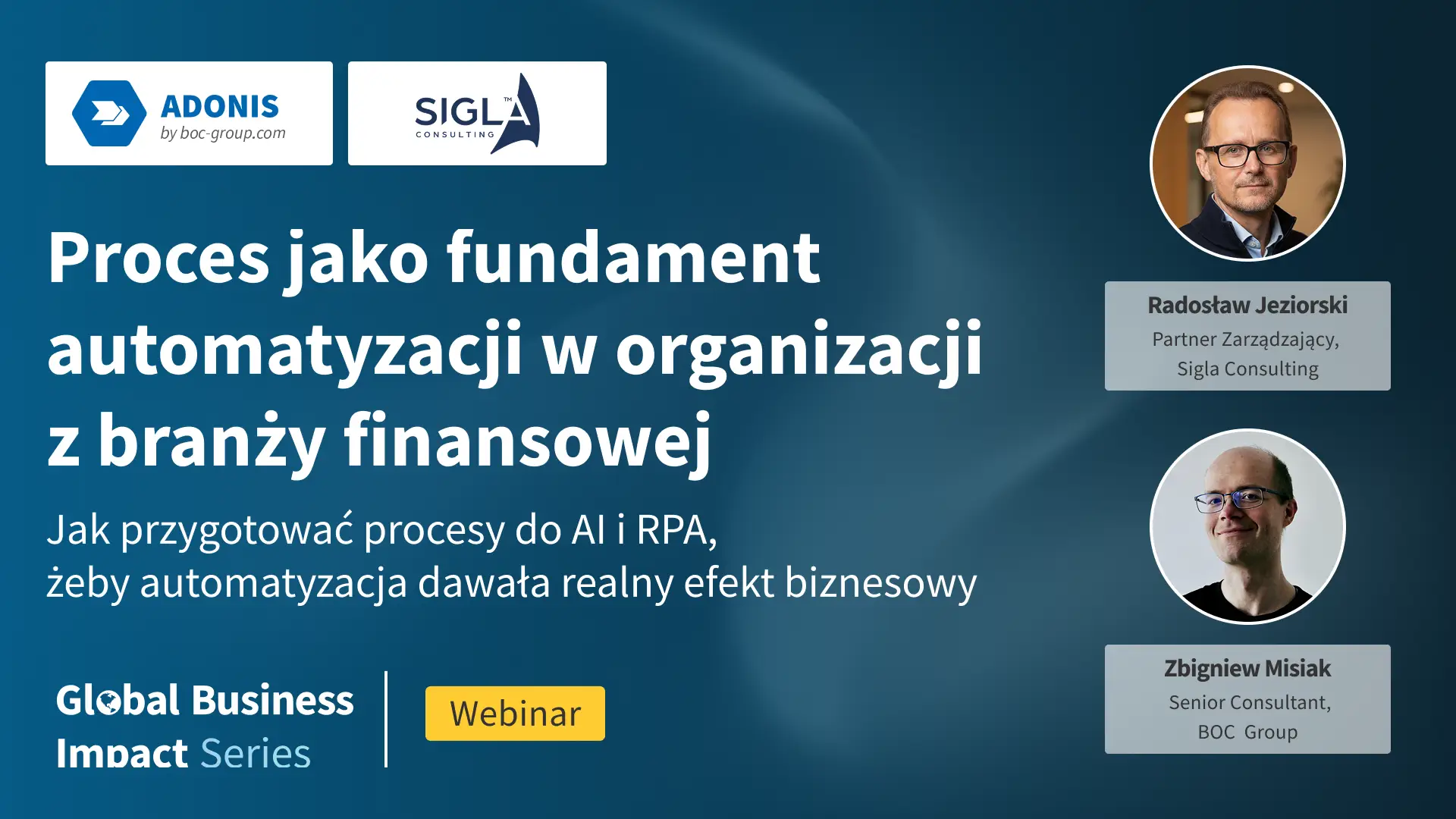 Wspólnie z naszym partnerem, Sigla Consulting, zapraszamy na webinar pt. Proces jako fundament automatyzacji w organizacji z branży finansowej – jak przygotować procesy do AI i RPA, żeby automatyzacja dawała realny efekt biznesowy, na którym pokażemy, jak przygotować procesy finansowe do automatyzacji i jak narzędzie ADONIS wspiera utrzymanie spójności między modelem procesu a wdrożonymi rozwiązaniami automatyzacyjnymi – od decyzji zarządczych po narzędziowe wsparcie.